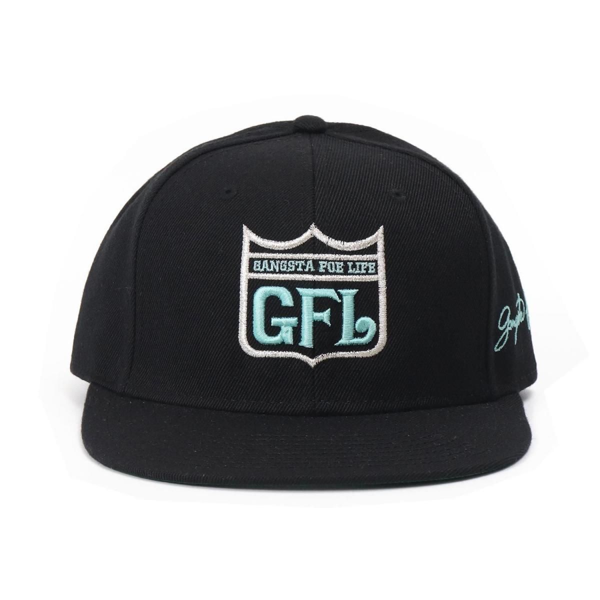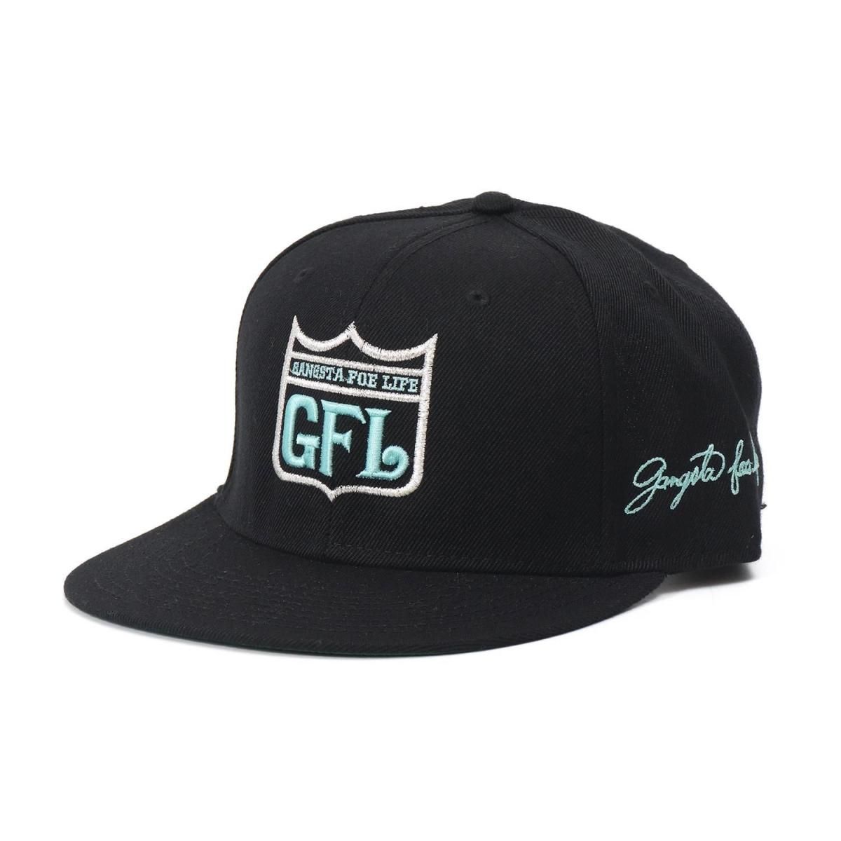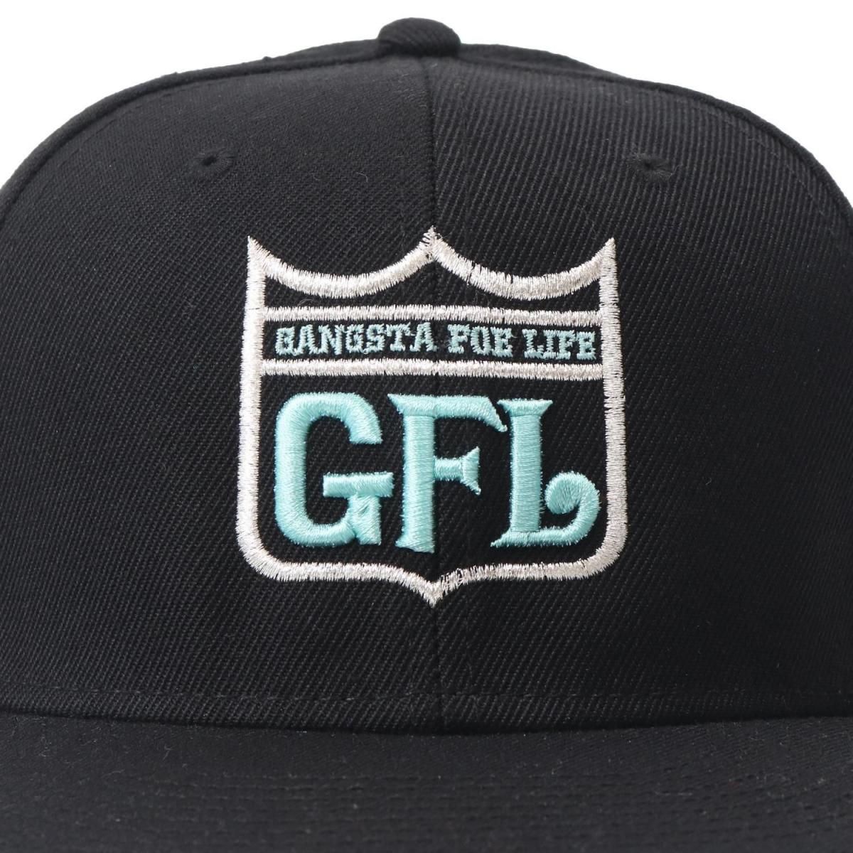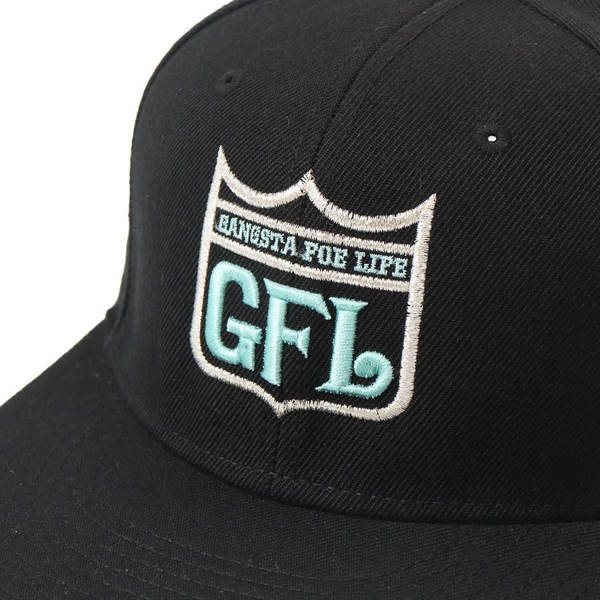 GFL (gangsta foe life) 当時の定番ブランドロゴをフロントに立体刺繍した、厚手ツイル素材のベースボールキャップ。