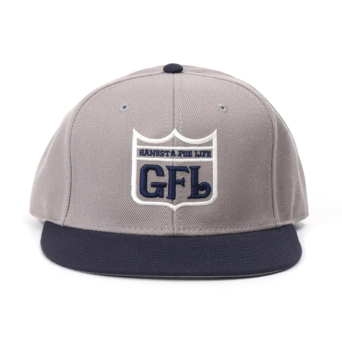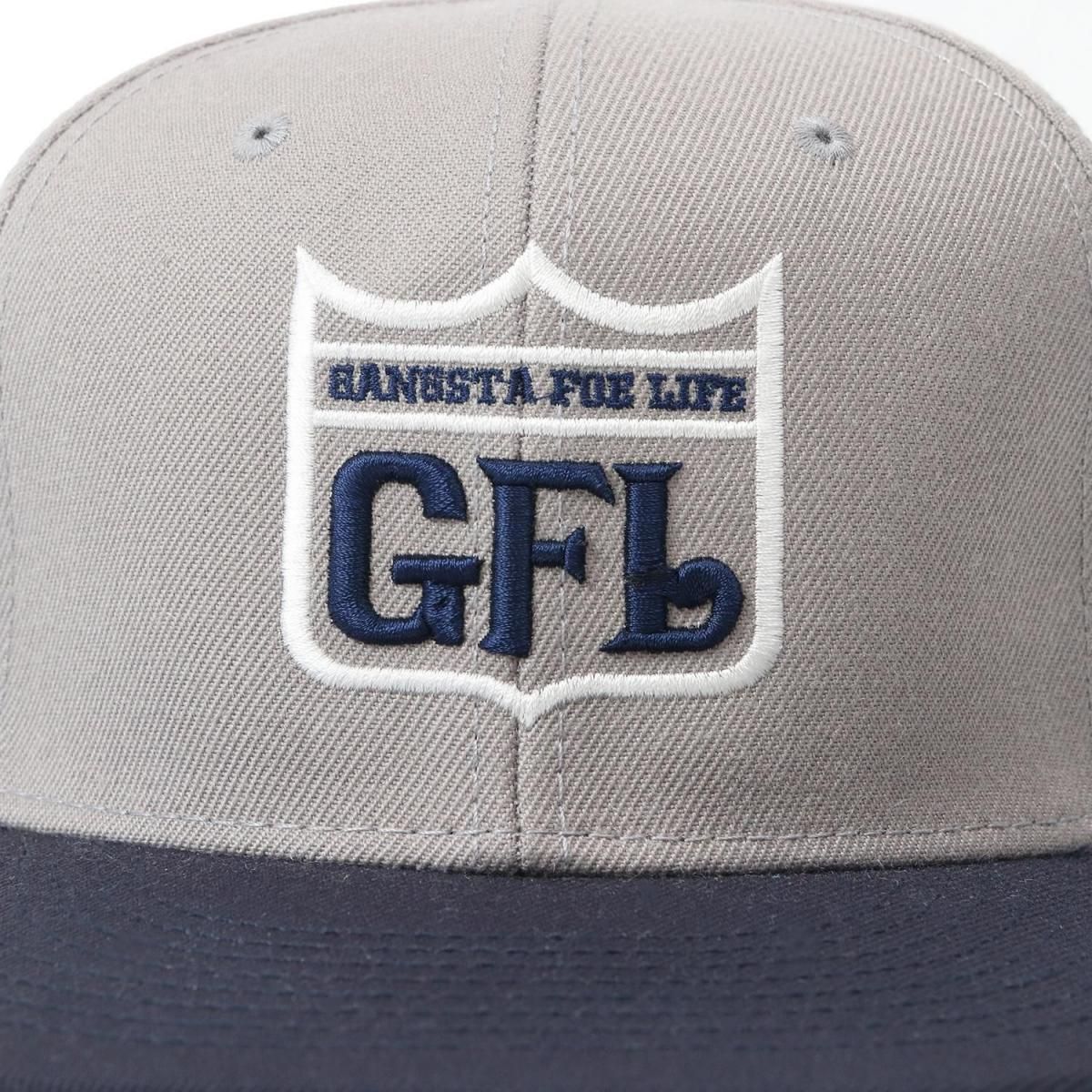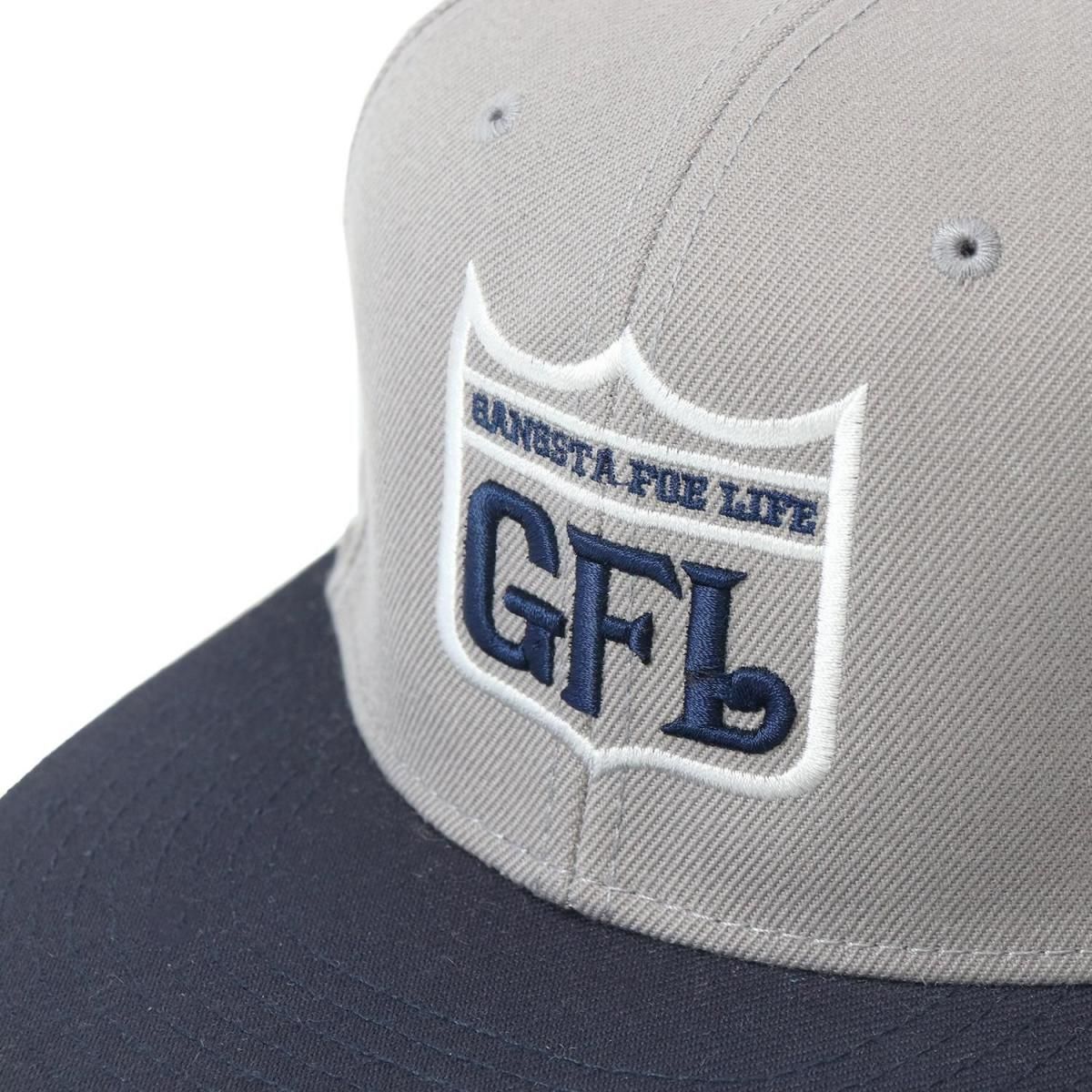 GFL (gangsta foe life) 当時の定番ブランドロゴをフロントに立体刺繍した、厚手ツイル素材のベースボールキャップ。