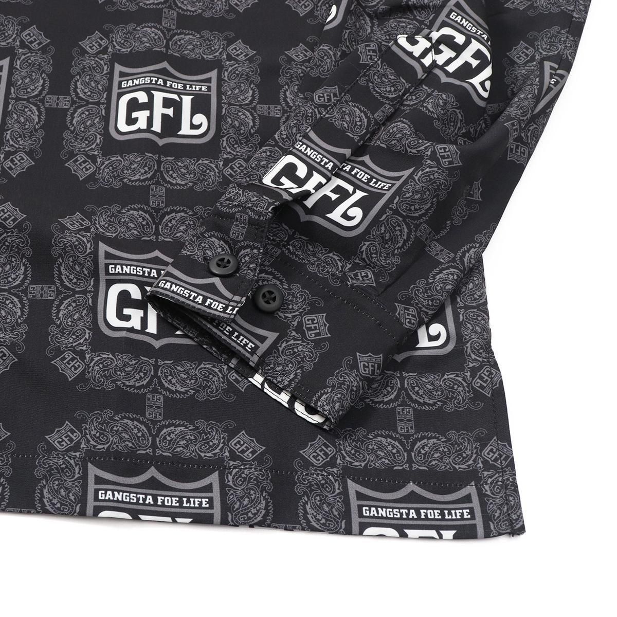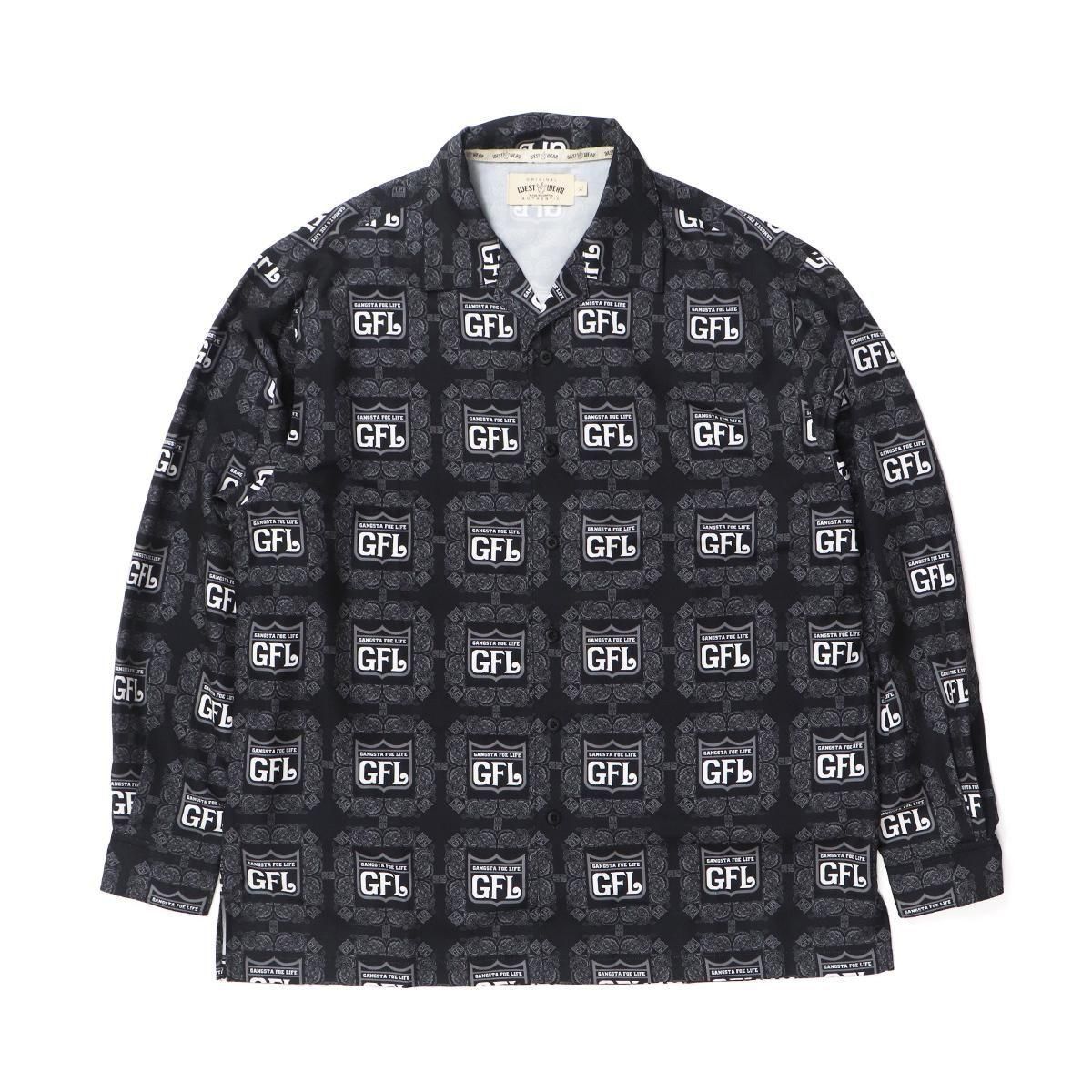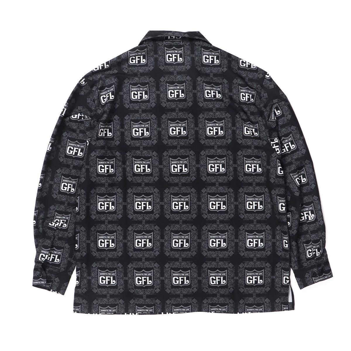 GFL (gangsta foe life) 存在感のあるロゴを全面にレイアウトしたロングスリーブシャツ。
