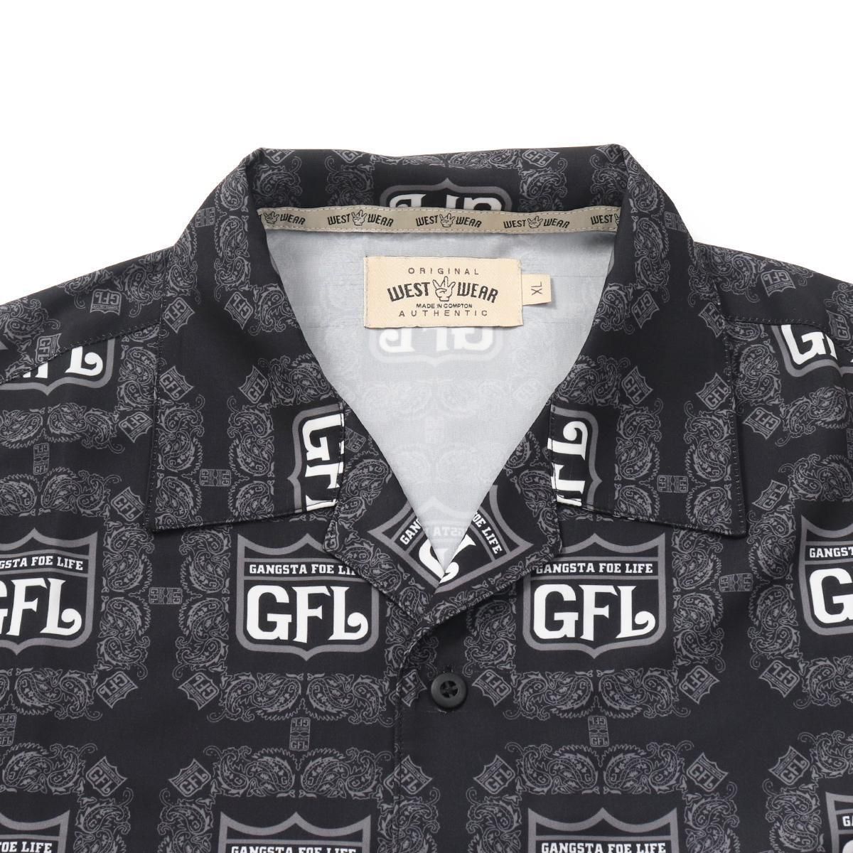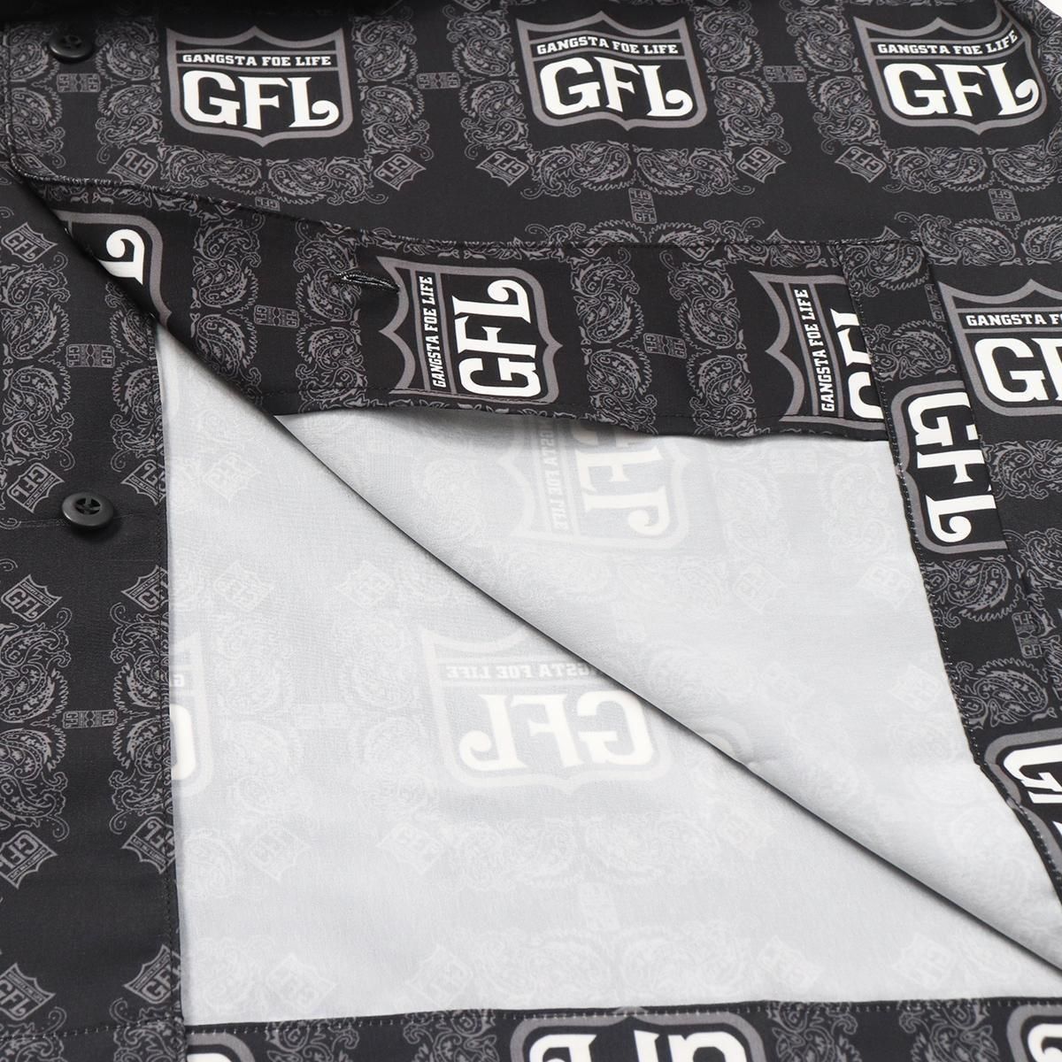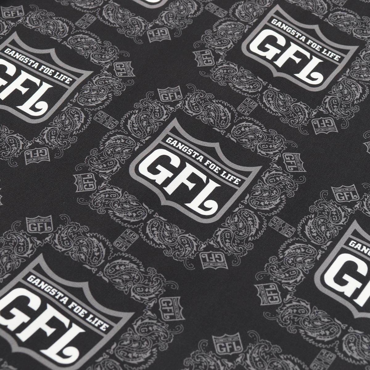 GFL (gangsta foe life) 存在感のあるロゴを全面にレイアウトしたロングスリーブシャツ。