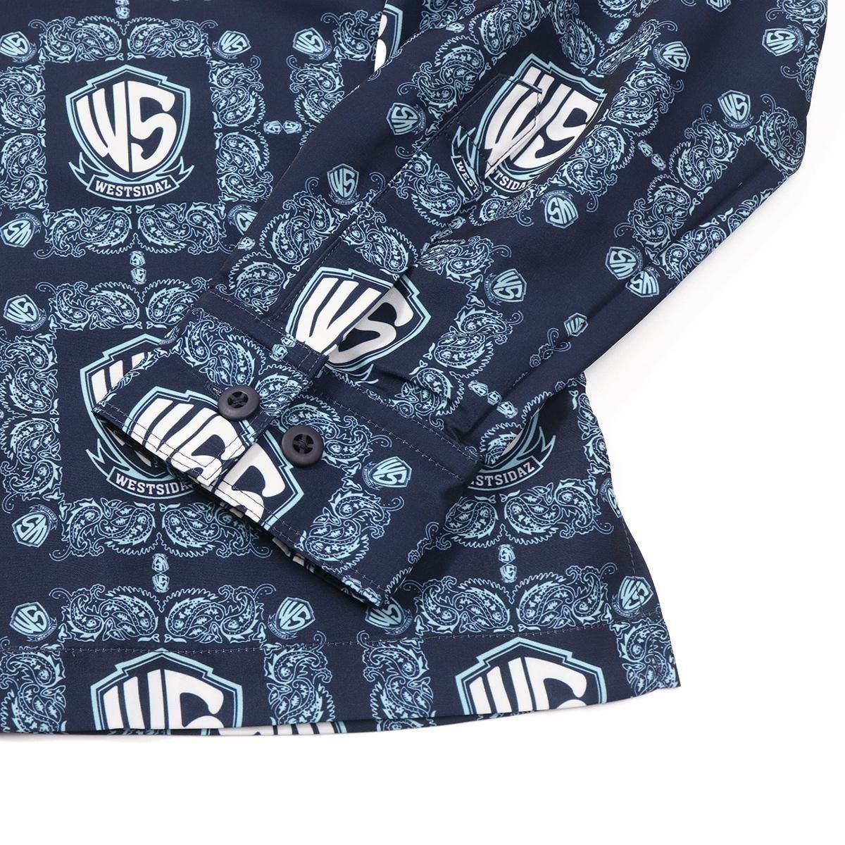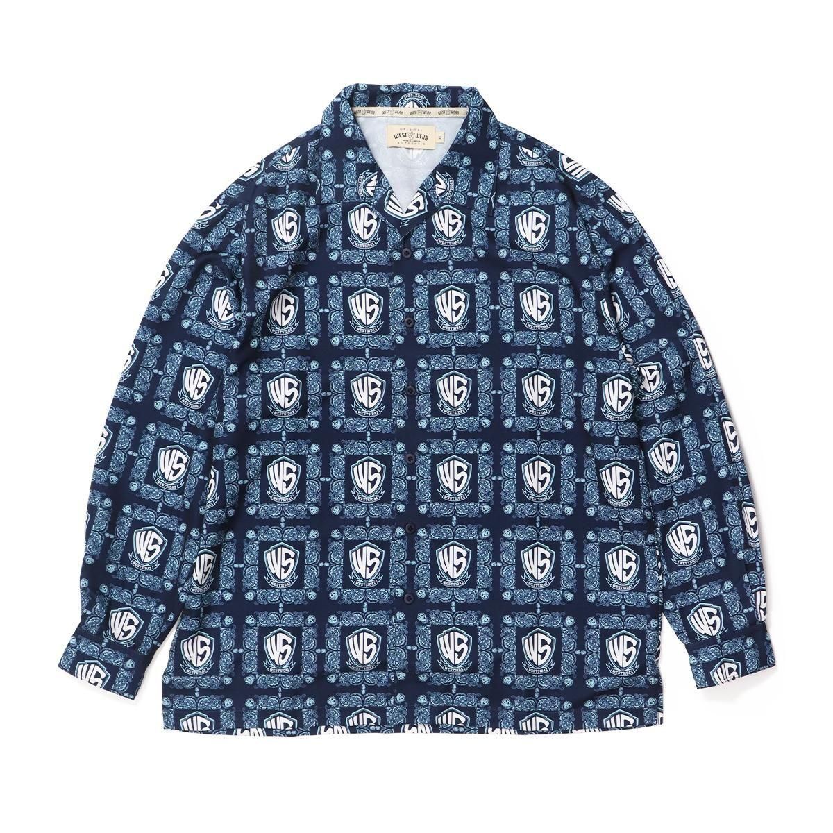 WS Logo Print L/S Shirts NAVY/SKY BLUE (L〜2XLサイズ)
